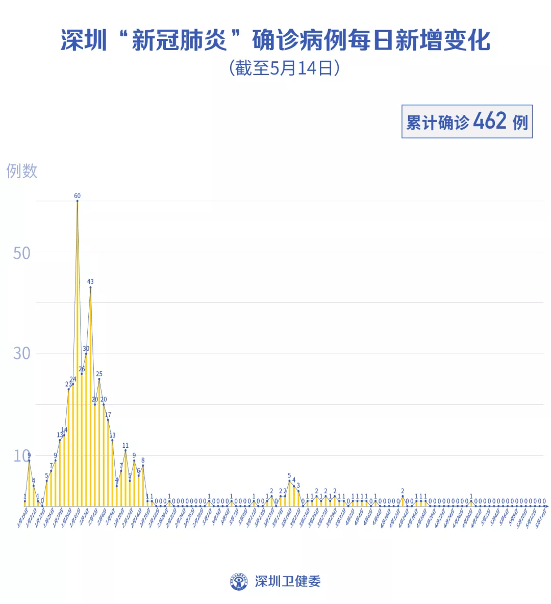 截至5月14日24時,深圳累計報告新冠肺炎病例462例。