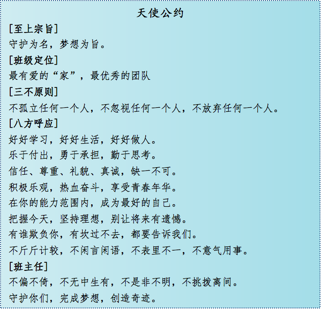詹老師所帶班級嚴格遵守著“公約精神”,創造了一個個驚喜:2015級14班在藝術季班級文化設計中是全校唯一全員參與的班級;2016級8班在跳繩比賽中從練習時的倒數第一到復賽逆襲闖進決賽獲得一等獎;2017級9班在疫情網課期間堅持每科作業“今日事今日畢”,無一人掉隊。