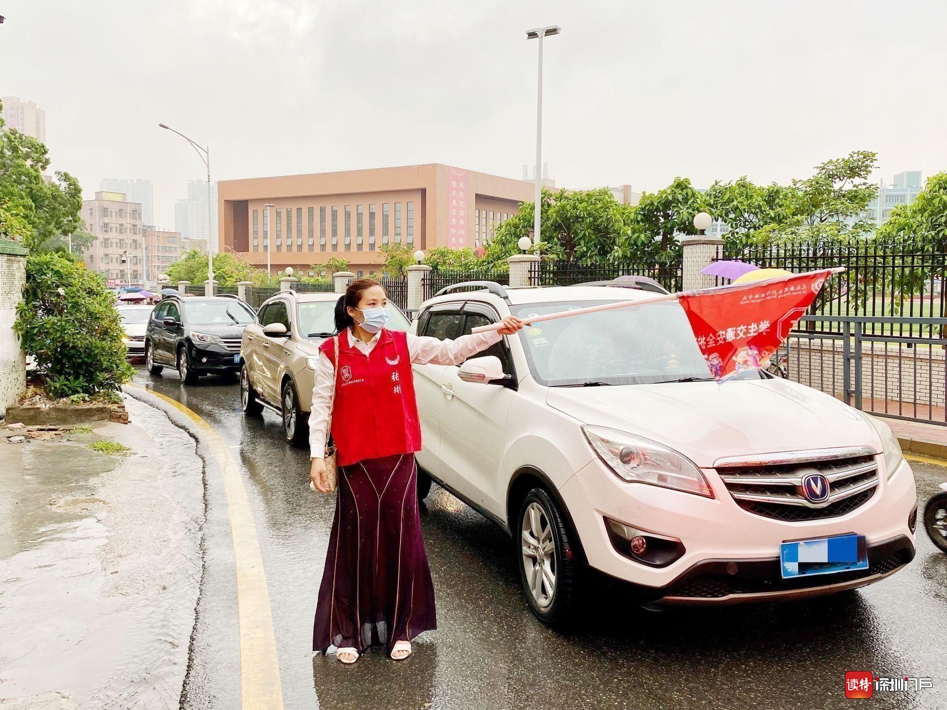 龍崗二職開學第一天,傾盆暴雨阻擋不住同學們開學的笑臉。校長、轄區民警、教師黨員志愿者早早在校門口迎接同學們回“家”。這是闊別三月的重逢,少年歸來依舊春風滿面。