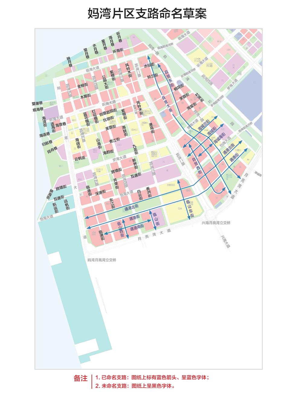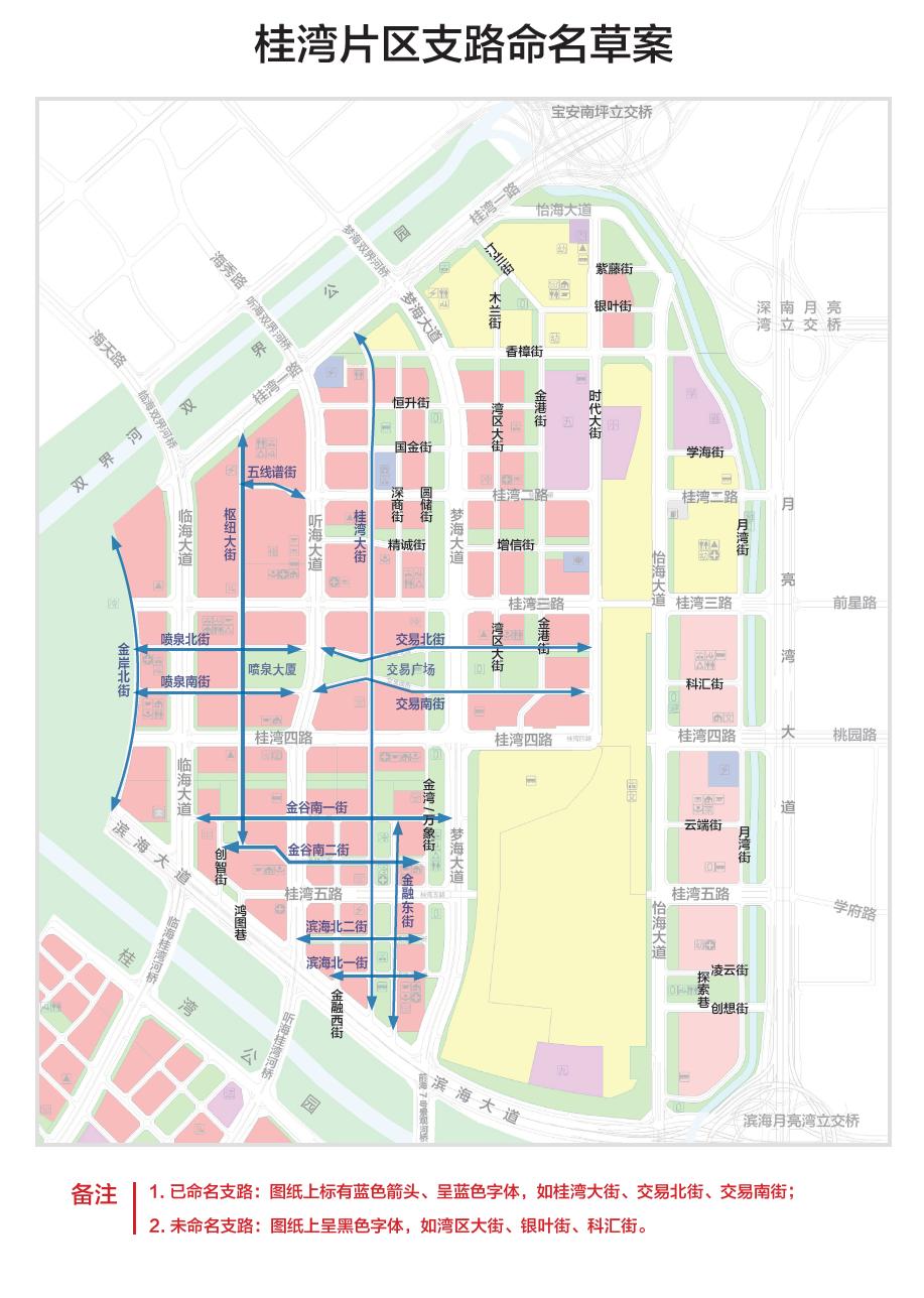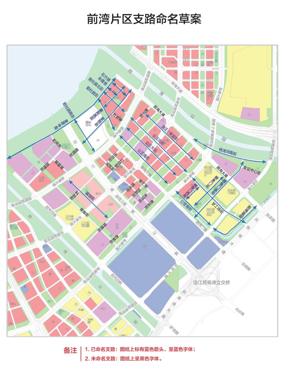 其中,桂灣片區(qū)共約37條(包括已命名支路13條,本次擬定支路命名草案24條),前灣片區(qū)約39條(包括已命名支路20條,本次擬定支路命名草案19條),媽灣片區(qū)共61條(包括已命名支路12條,本次擬定支路命名草案49條)。同時(shí),將代表前海門(mén)戶(hù)通道的主干道“前灣一路”更名為“前海大道”。