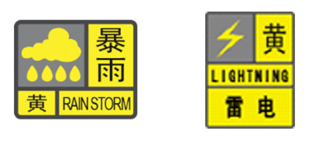 分區暴雨黃色預警和全市雷電預警