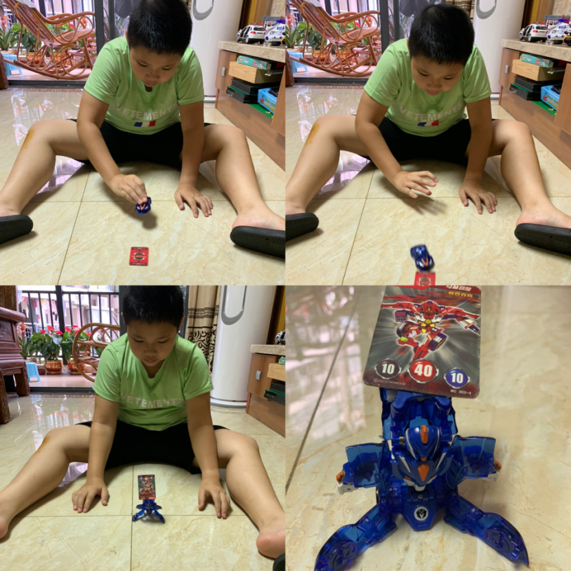 ▲這是爸爸小時候愛玩的“斗腳”游戲。爸爸現在也教我玩,并告訴我遇到挫折時要跟“斗腳”游戲一樣奮勇而戰,永不放棄迎難而上。