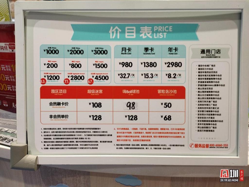 星際傳奇采用多場所差異化的收費制度,每個項目價格均有不同,深圳新聞網記者從工作人員處了解到每位兒童的單次消費均價在150元左右,陪同的大人免費。有需要的市民也可以選擇辦理月卡或者是年卡,享受更大力度的折扣。游樂場內部地面干凈整潔,有家長休息區,在前臺有充電寶租借。