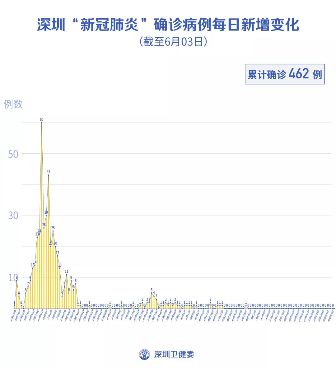 截至6月3日24時(shí),深圳累計(jì)報(bào)告新冠肺炎病例462例。