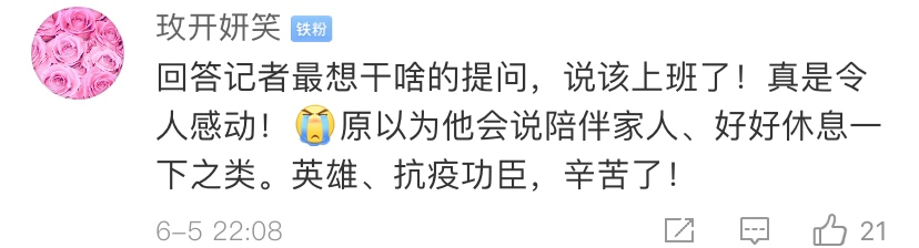 網友紛紛致敬:“辛苦了,好好休息休息!”“向您表示衷心感謝”。