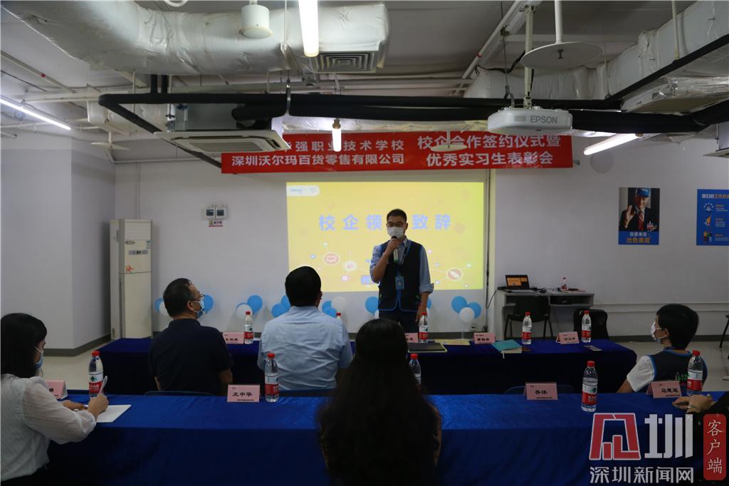 見圳客戶端·深圳新聞網(wǎng)2020年6月24日訊(記者 曹園芳 通訊員 沈琳 喬沐)昨天下午,深圳市華強(qiáng)職業(yè)技術(shù)學(xué)校與深圳沃爾瑪百貨零售公司簽訂校企合作協(xié)議。趙盟校長、朱俊康副校長、西校區(qū)王中華主任、校企合作辦黃琳主任、商貿(mào)部喬沐部長、財(cái)經(jīng)部馬慧連副部長、辦公室沈琳老師及學(xué)校優(yōu)秀實(shí)習(xí)生代表出席了簽約儀式暨優(yōu)秀實(shí)習(xí)生表彰會(huì)。