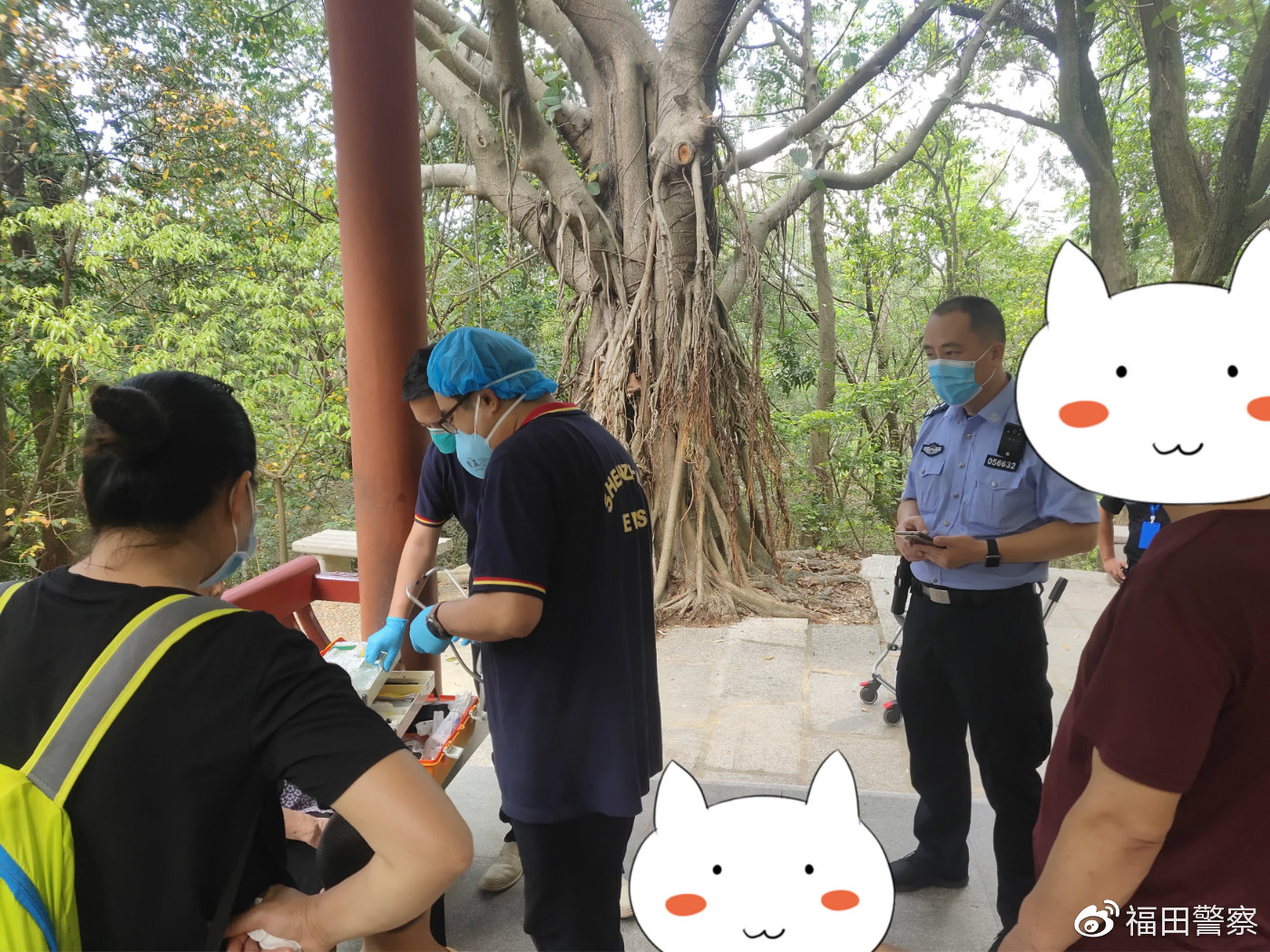 13時許,接派出所前臺指令,報稱一老人身體不適請求幫助后,民警立即趕到現場,協助120醫務人員進行檢查。檢查完畢后,民警為老人遞上一杯水,并在確認老人身體無礙后,將其護送下山。