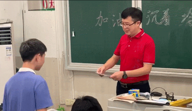 七點五十分,高三年級老師叫同學名字挨個上臺發放準考證,提醒學生考試注意技巧,細心規范,按照平時周測的情況發揮就可以了。祝大家旗開得勝,馬到成功。
