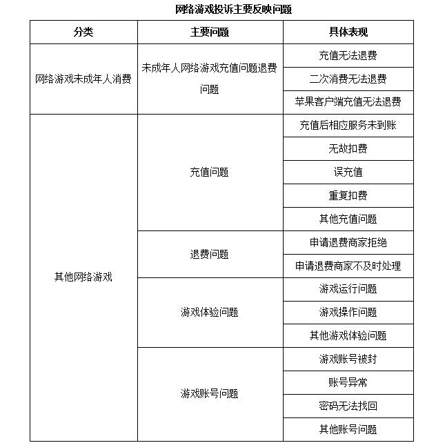 未成年人消費成網(wǎng)絡游戲投訴主要問題