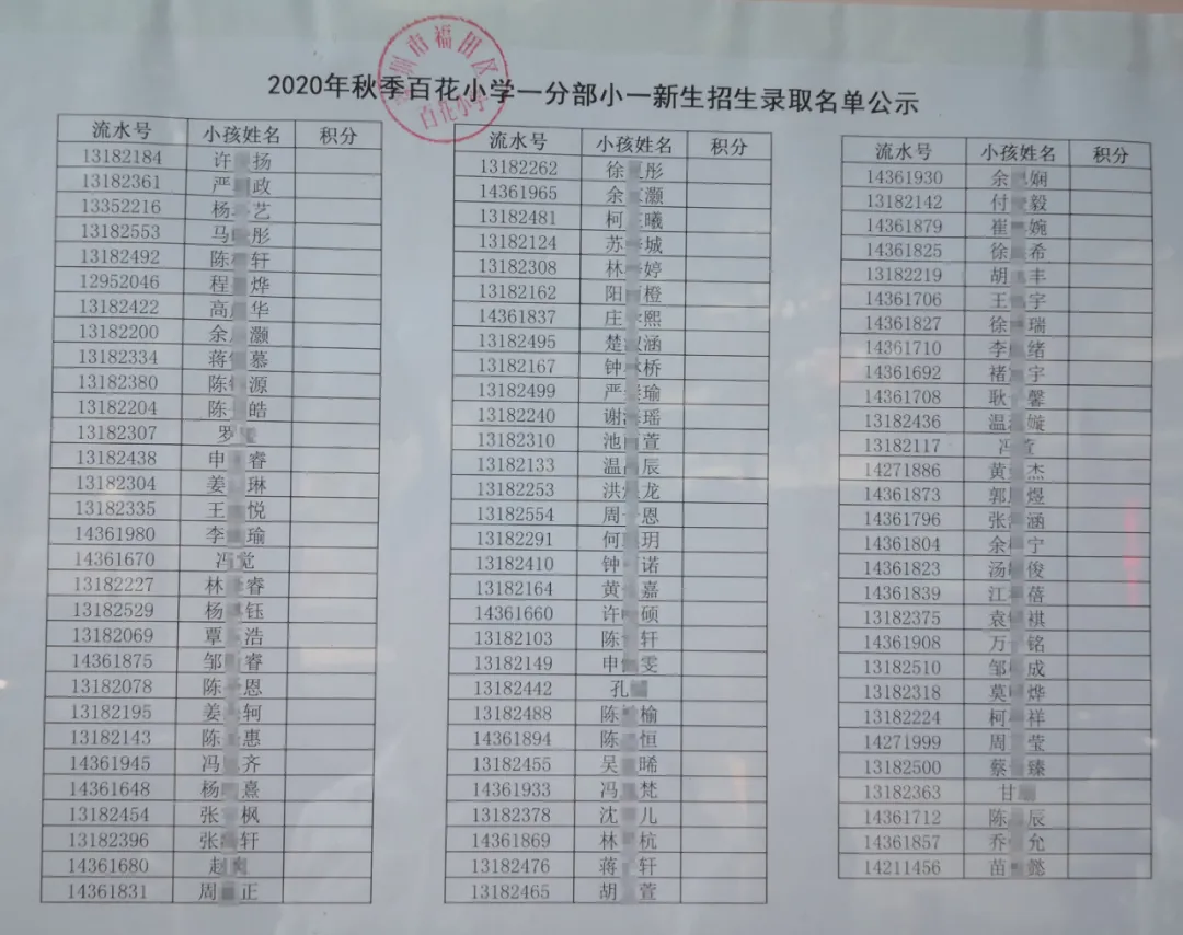 2020年福田區公辦小一新生錄取名單來了,部分學校最低錄取積分曝光
