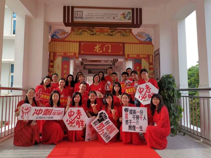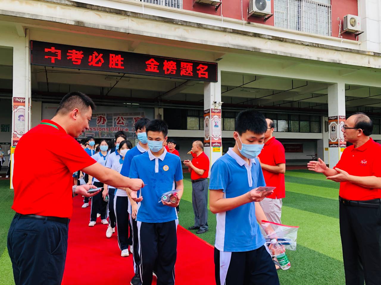 龍崗六約學(xué)校全體行政人員與九年級老師,穿著紅色送考服送考,寓意“鴻運(yùn)當(dāng)頭”。九年級學(xué)生走過龍門,踏上紅地毯,自帶炫酷出場bgm。(記者李麗、周紅聲)