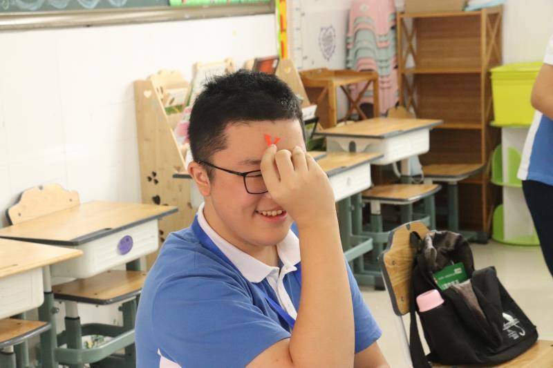 坪山同心外國語學(xué)校考生在腦門上貼上“紅色勝利標(biāo)”,在考場上震懾你的對手。(焦子宇、耿超逸 文 圖)