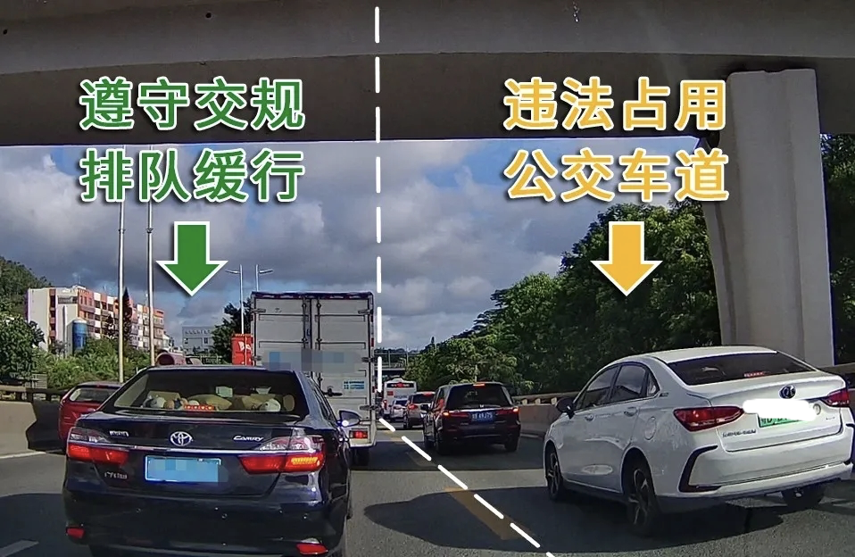6.公交車道禁行期間禁行車輛于公交車道拍攝的圖片或視頻視為同違法,不予采用。
