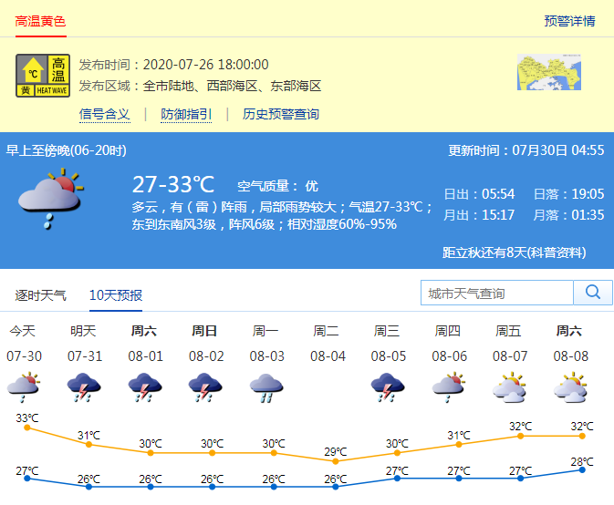 見圳客戶端·深圳新聞網2020年7月30日訊(記者 陳婕 施冰冰) 你那里下雨了嗎?昨日深圳中西部地區出現強雷雨,高溫天氣得到緩解。今天天氣如何?記者從深圳市氣象臺了解到,7月30日多云,有(雷)陣雨,局部雨勢較大。30日夜間至8月1日白天受偏東氣流影響,有間歇性雷陣雨,局部暴雨,雨時伴有短時8級陣風,高溫天氣緩解,2-5日有明顯降雨過程。