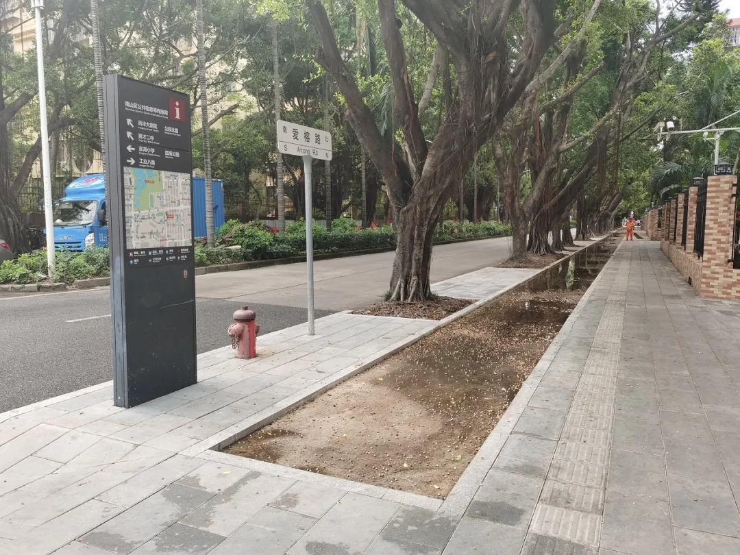 據深圳市交通運輸局南山管理局相關負責人介紹,目前愛榕路(荔園路—東濱路段)兩側人行道正在進行相關提升改造工程。