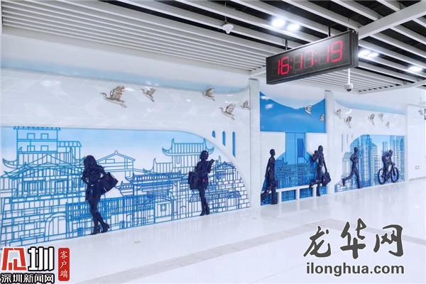 2015年,曾經的深圳經濟特區“梅林關檢查站”正式退出歷史舞臺,由梅林關等組成的深圳特區管理線,是特區建設的歷史見證,承載著城市的記憶。一進站廳層,雕塑作品《梅林關記憶》便讓人留下深刻印象,該作品的畫面主背景為已拆除的“梅林關聯檢大樓”,透過兩側的半拱造型、線性結構建筑使得深圳的厚重歷史與飛速發展清晰可見。
