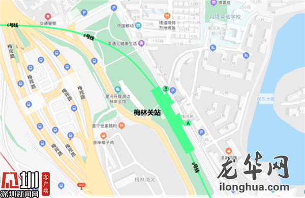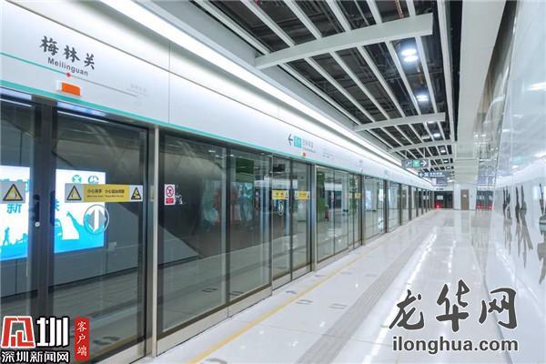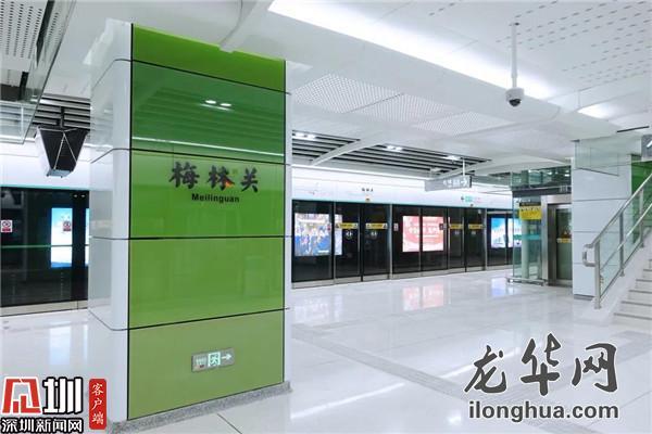 梅林關站位于梅觀路與豐澤湖小區之間綠化帶內,整體與梅觀路平行,呈南北走向,車站南端頭至星河丹堤小區內,北端頭至梅林關檢查站出關口處,西側緊靠梅觀路。