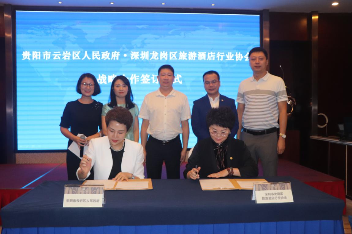 最后,貴陽市云巖區(qū)人民政府與深圳市龍崗區(qū)旅游酒店行業(yè)協(xié)會,共同簽訂戰(zhàn)略合作協(xié)議。雙方建立長期合作關系,全面廣泛、深度地進行合作、資源共享,將充分發(fā)揮各自優(yōu)勢,就中高端酒店產(chǎn)業(yè)資源交流、優(yōu)勢互補、產(chǎn)業(yè)導入等開展深入合作。