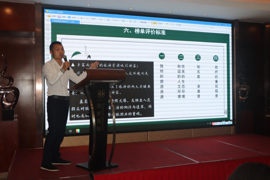 中國最美縣域榜單融媒體主任李帥向與會嘉賓介紹中國最美縣域榜單,并希望各地認真踐行“綠水青山就是金山銀山”發(fā)展理念,建設“最美縣域”,共圓“美麗中國”夢。