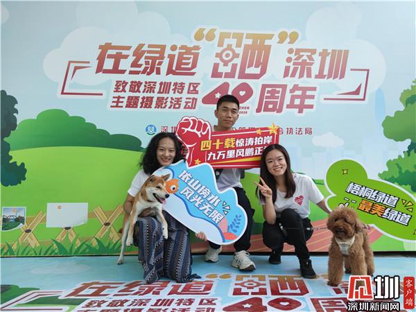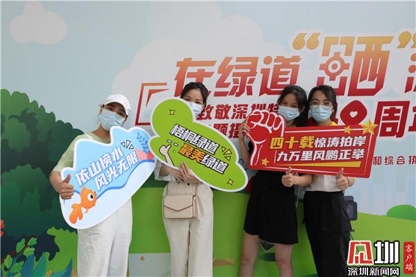“我是在‘i羅湖’公眾號上看到消息,說是周日梧桐綠道會舉辦攝影活動,于是帶著家人來游玩拍照”。羅湖市民周先生說。這里有深圳和綠道元素的標語、頭箍、合影異形牌等道具,拍照打卡很有紀念意義,而且還有專業的攝影師和智能照片打印機。“我們一家人很久沒有合影了”拿著剛打印出來的照片,周先生看著家人笑得很開心。