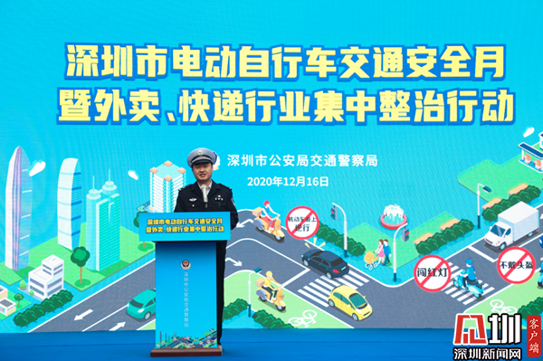 見圳客戶端·深圳新聞網12月16日訊(記者 郭含笑 通訊員 劉明)12月16日下午,深圳交警在羅湖區東門文化廣場舉行深圳市電動自行車交通安全月暨外賣、快遞行業集中整治行動啟動儀式。現場邀請全市外賣、快遞企業代表參加啟動儀式。深圳市交警局局長徐煒、深圳市交警局副局長馮新毅及相關領導班子出席了啟動儀式。