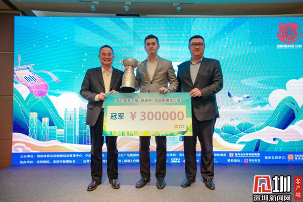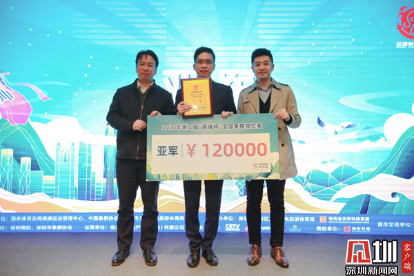 12月31日下午,由佳兆業呈現的第二屆“鵬城杯”全國象棋排位賽在深圳市羅湖區陽光酒店舉行頒獎儀式。王天一獲得冠軍以及30萬元的獎金,趙鑫鑫、孟辰分別獲得了亞軍、季軍。