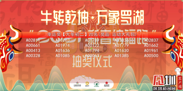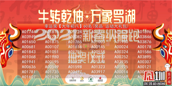 值得一提的是,本次活動不限地域、不限時間,不僅得到了羅湖市民的熱捧,也得到了深圳各個區域和深汕特別合作區的市民積極參與,讓新春的福氣遍布深圳。春節假期期間,在深圳的各個公園和綠道都能看到市民運動的身影,同時為了鼓勵留深人員,積極參與活動,組委會精心準備了200余份運動大禮包,分別在除夕、正月初二、正月初五、正月初八、元宵節分五次隨機抽取幸運者獲得運動大禮包。