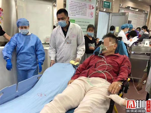 為了盡快將傷者送往醫院治療,鐵騎隊員立即進行交通疏導、鳴笛開道,開辟了一條緊急生命通道。在鐵騎隊員有條不紊地合作下,堵住救護車的車輛最終僅耗時7分鐘,便將傷者從望桐路送到了深圳市人民醫院接受治療。