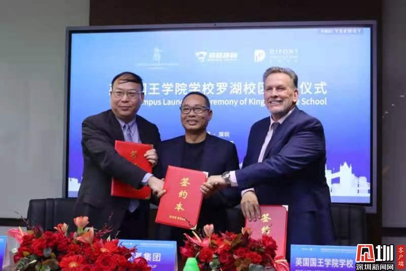 見圳客戶端·深圳新聞網4月21日訊(記者 劉晨)4月20日上午,英國國王學院學校(King's College School, KCS)羅湖校區啟動儀式在京基100大廈舉行,英國國王學院學校代表Peter Derby-Crook、狄邦教育集團總裁張博文、京基集團董事長陳華共同簽署三方合作框架協議書。