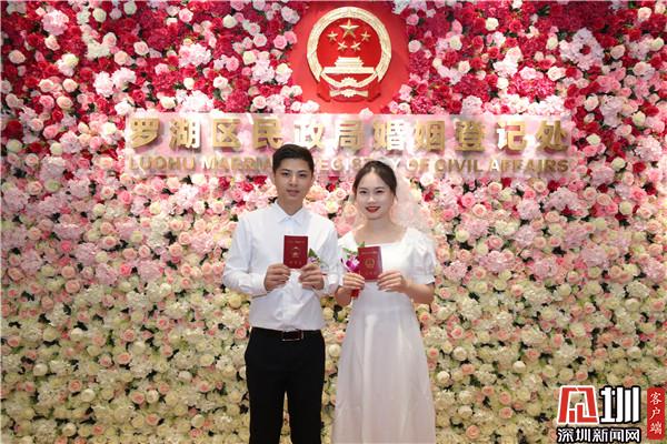 羅湖區婚姻登記處將疫情防控與高質量登記服務有機結合,在準備好充足防疫物資的基礎上,現場引導新人完成防疫流程,完成體溫測量和個人信息登記;同時聯動多部門共同合作,確保疫情防控常態化下的婚姻登記服務工作平穩有序開展。5月20日當天,羅湖婚姻登記處辦理結婚登記218對。