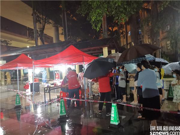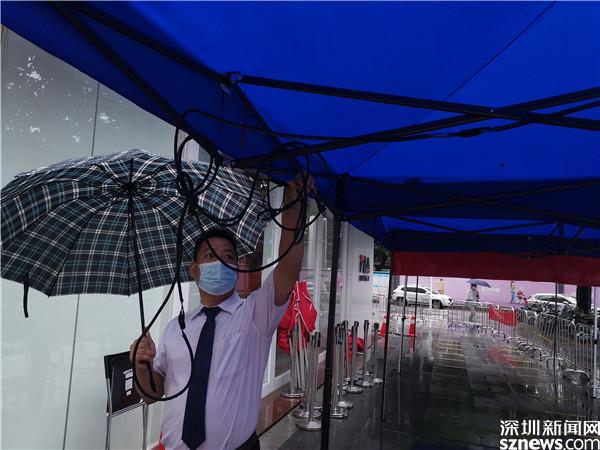 讀特客戶端·深圳新聞網2021年6月21日訊(記者 李慧)6月21日晚及6月22日一早,深圳雷雨交加,深圳市氣象臺2021年06月22日07時10分在多個區域發布暴雨紅色預警,羅湖也包括其中。有那么一群人,嚴陣以待、逆雨迎風,堅守在抗疫一線。記者到各核酸檢測點看到,醫護人員和社區義工們仍然冒著風雨,堅守在核酸采集的崗位上。
