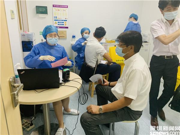 據寶能人力行政中心總監盧學群介紹,由于企業工作節奏快的緣故,為保障員工都能接種上疫苗,寶能積極組織號召,在疫苗接種初期,在和社區溝通后,利用午休和下班時間以及周六、日,在集團樓下增設了疫苗接種專場,專場時間延長至晚上10點才結束。
