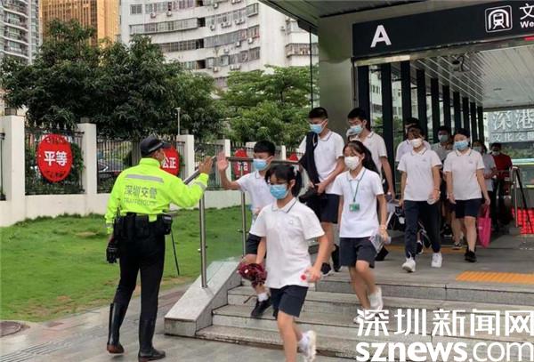 羅湖交警在考場周邊設立交警護航服務點,配備遮陽篷、工作臺、口罩、雨衣、解暑應急藥物、飲用水等,派駐專項“中考服務車”為考生及家長服務。同時,對中考期間可能出現的風雨天氣制定了安全應急預案,針對道路交通情況復雜的考點,交警部門還增派警力加強值守和巡邏管控,維護考點周邊道路交通秩序。