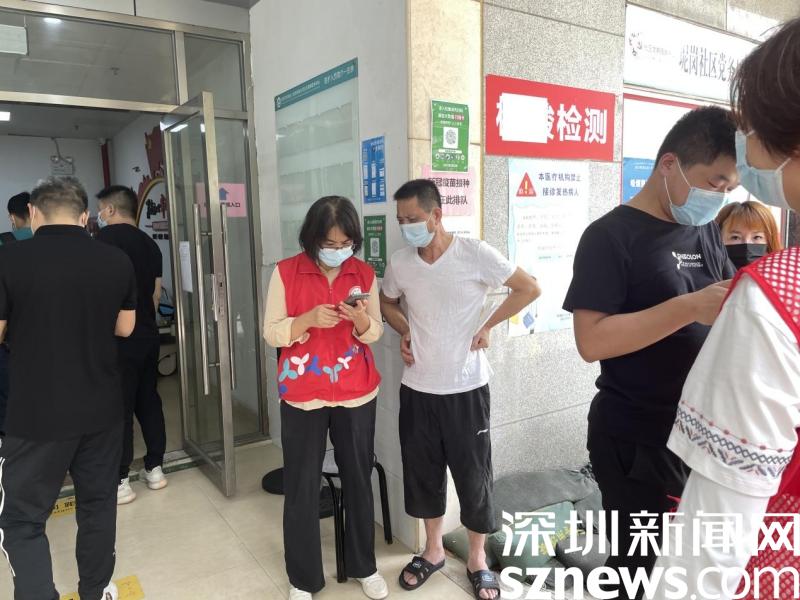 “小伙子,能幫幫我嗎?我不識字,不會用手機。”針對一部分不擅長使用手機的特殊人群,駐點社康抗疫工作人員細心、耐心地幫助其在手機上完成個人信息申報,實名認證等操作,對于沒有手機的,工作人員就用自己的手機為其填報信息,讓有需求的市民都能得到安全保障。在社區(qū)的防疫一線工作中,駐點社康抗疫工作人員身體力行黨為人民服務(wù)的優(yōu)良作風,在疫苗接種及核酸檢測的現(xiàn)場維護秩序、審核登記,為抗疫醫(yī)護工作者減輕工作壓力。
