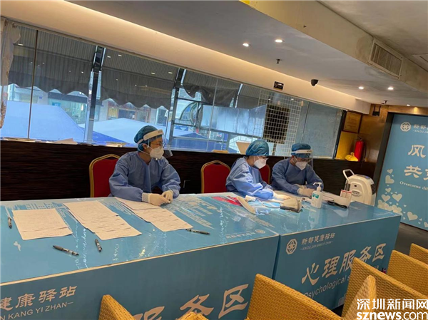 心理健康服務團隊正在心理服務區等待為隔離人員進行心理評估。