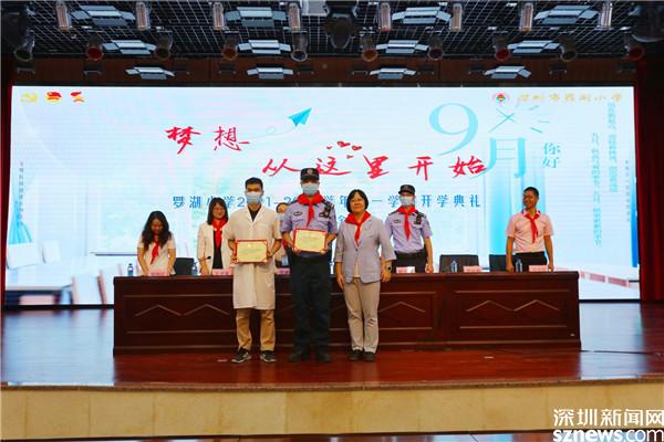 羅湖小學舉行開學第一課,內(nèi)容包括疫情防控、校長開學思政課、暑期“五星”作業(yè)分享、法治輔導員和勞動健康輔導員聘書頒發(fā)、學習“七一”勛章先進事跡等。