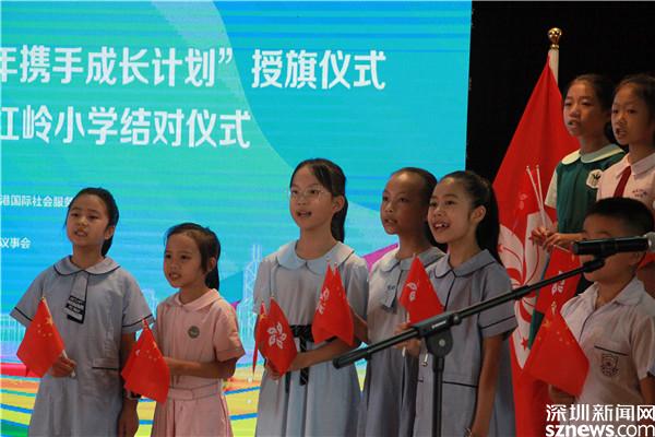 讀特客戶端·深圳新聞網2021年9月30日訊(記者 劉嘉敏 通訊員 黃潔)2021年9月30日上午,在慶祝中國共產黨成立100周年、喜迎新中國成立72周年之際,羅湖區委統戰部、羅湖團區委、羅湖區教育局、羅湖區婦聯、香港國際社會服務社共同舉行“手牽手向前走——深港青少年攜手成長計劃”授旗儀式暨羅湖區跨境學童服務中心和深圳市紅嶺小學結對儀式,以更實舉措推進深港青少年廣泛交往、全面交流、深度交融。