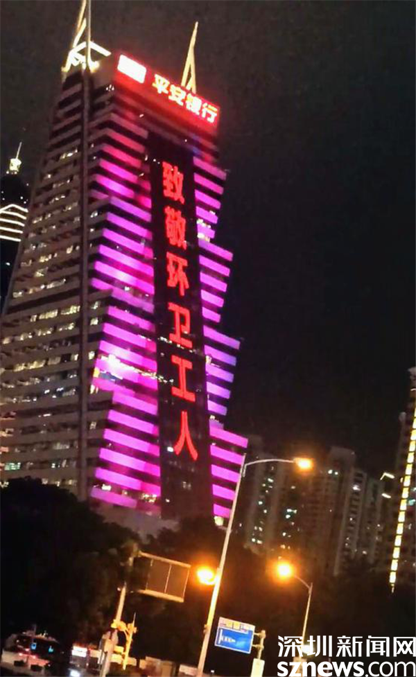 (羅湖地標性建筑為環衛工人亮燈)