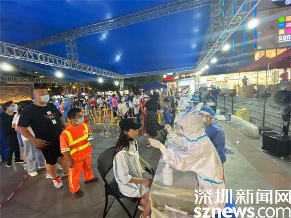 夜晚仍在進行核酸采樣的深圳市羅湖醫院集團醫護