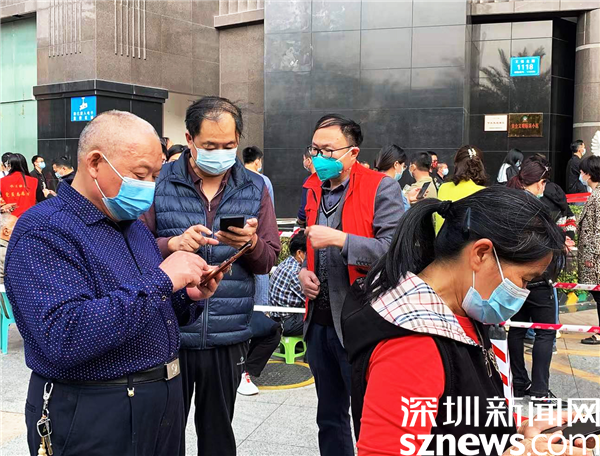 羅湖區審計局副局長陳偉健在水貝社區防疫現場指導使用“i深圳”。