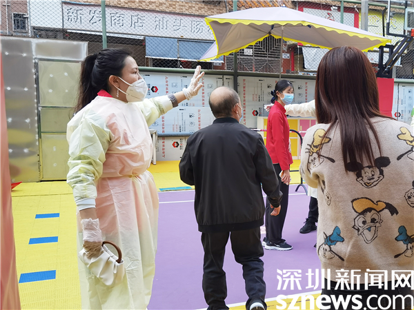 羅湖區審計局黨組書記黃吉南在新村社區防疫現場指導核酸檢測流程。