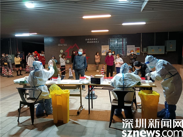 這天,老圍社區(qū)某棟樓全員檢測,社區(qū)緊急設立了臨時檢測點,社區(qū)黨委書記許少瓊忙前忙后指揮布置現場,調度管理處通知住戶下樓采樣,所有社區(qū)工作人員緊急行動起來,醫(yī)務人員也很快就位,居民積極配合,采樣工作有序進行。