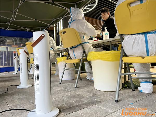 十分鐘后,物資配送車(chē)輛來(lái)到萬(wàn)科里核酸檢測(cè)點(diǎn),工作人員將熱乎乎的姜茶送到工作人員手中,并熟練地尋找合適的地方架起暖風(fēng)機(jī)。“從周末的暖寶寶,到今天的暖風(fēng)機(jī),暖心行動(dòng)一再升級(jí),感覺(jué)很驚喜。”羅湖醫(yī)院護(hù)士劉新媚向記者說(shuō)道,目前疫情防控工作任務(wù)艱巨,檢測(cè)點(diǎn)周末也在連續(xù)運(yùn)轉(zhuǎn),但街道及時(shí)的物資保障,讓所有一線人員都感覺(jué)很暖心。