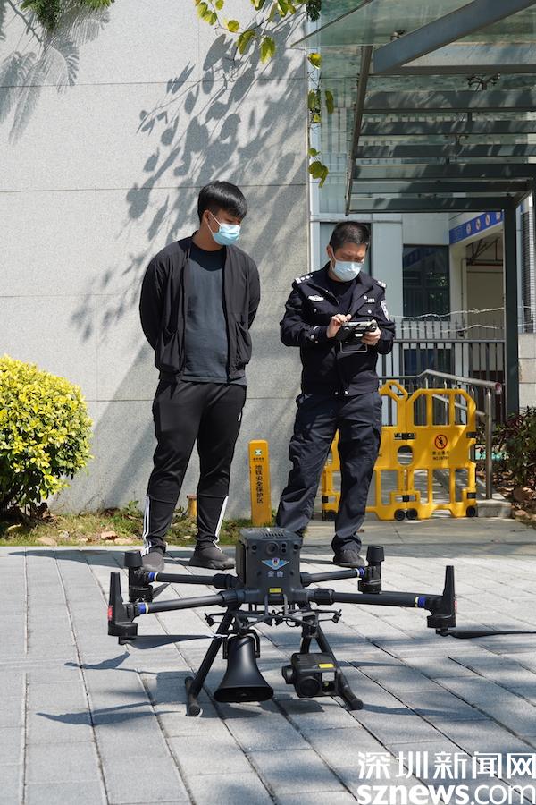 “為了您和家人的健康,所有在桂園街道轄區工作、生活的居民,從2月24日起連續4天實行全員核酸檢測,4天4檢。轄區內所有物業小區、商業樓宇、市場等場所均設置卡口,人員進入需掃描“場所碼”……”中午,記者在桂園街道鹿苑小區外見到,民警與無人機飛手正操控著一款“神兵利器”,助陣疫情防控,空中喊話管控、防范區居民,快速傳遞最新防疫信息。