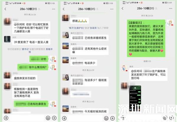 “疫情發(fā)生以來,長嶺社區(qū)全體工作人員通宵達旦全力抗疫,力爭跑在疫情前,第一時間按樓棟、分單元建立8個居家隔離服務微信群,社區(qū)工作人員和志愿者進入每個單元群收集居民的各種服務需要,并及時回復。之前,有工作人員在給外賣消毒中發(fā)現有感冒消炎藥物,立即打電話咨詢,得知有位居民出現扁桃體發(fā)炎引發(fā)高燒,隨及在居家隔離服務微信群請求支援,開通24小時專線服務,讓居民能夠及時就醫(yī)”。