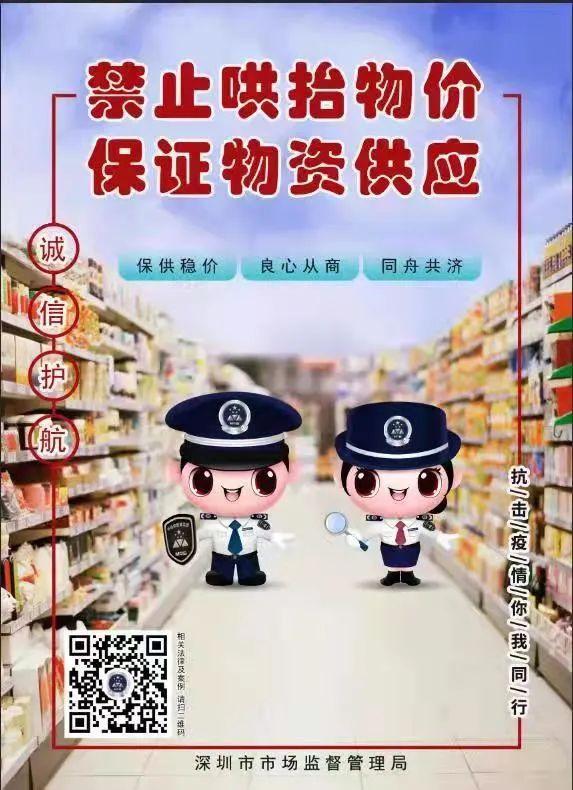 請廣大經營商家自覺維護正常市場價格秩序,保護消費者的合法權益,對于囤積居奇、哄抬物價、捏造漲價信息,推動價格過高上漲等擾亂市場秩序的行為,深圳市場監管執法人員一經查實,依法從嚴處理,對情節惡劣的典型案件將向社會公開曝光。 同時,如果市民朋友發現價格違法行為,請積極監督提供線索,并及時撥打“12345”電話舉報。