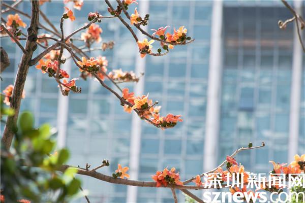 赤焰灼灼的木棉花開了,染紅了轄區半邊天際,與深圳藍相映成趣。一朵朵嫣紅的花兒垂滿枝頭,沐浴著暖春的陽光綻放,也點綴著花下賞花的居民們。