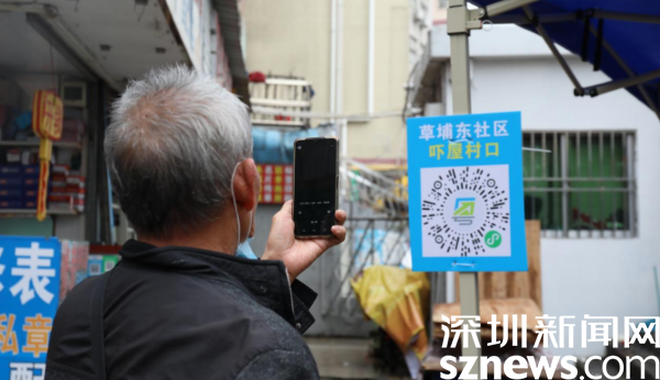 在東曉街道草埔東社區嚇屋村村口,社區工作者正堅守在卡口,對進出社區的車輛、行人進行掃碼、測溫。在認真檢查居民核酸碼后,社區工作者還不忘提醒居民們戴好口罩。