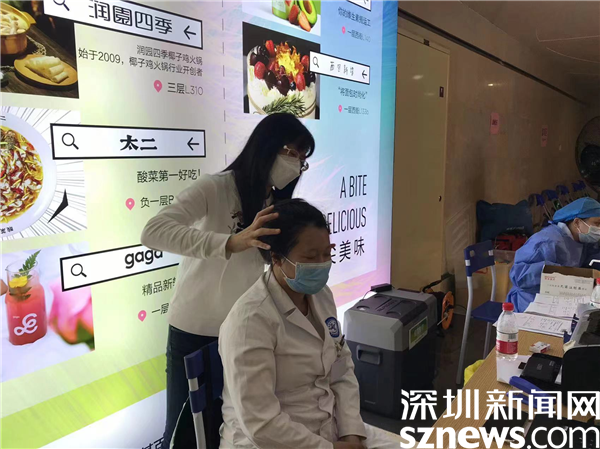 5月1日下午,老圍社區黨委書記許少瓊來到KKMALL商場負一樓的疫苗接種點,看望現場的工作人員和醫務人員,檢查當天的疫苗接種情況,并與工作人員一起動員來往行人進行加強針的接種。當她聽說負責登記的醫生因為淋雨著涼而頭疼得厲害,卻還在默默堅持時,許少瓊立刻走到醫生的身后,為醫生按摩頭部。被按摩的醫生一再說,“很舒服,輕松了很多。”其實,這一天,連續工作4個月無休的許少瓊,身體也不是很好,但她用堅強的毅力壓抑了身體的不適,以一貫的積極樂觀影響帶動著身邊的同事。