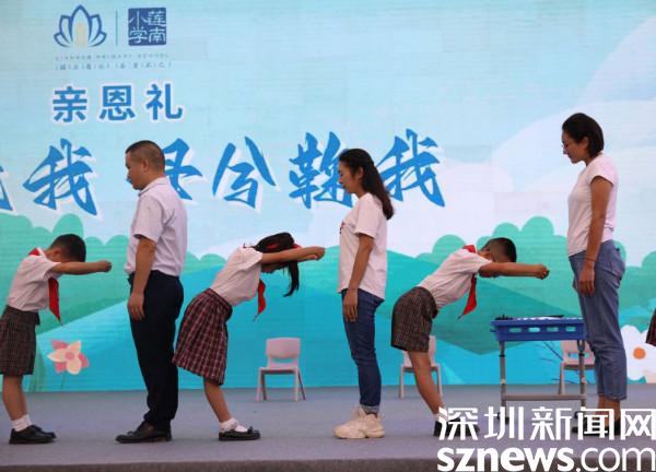 活動由詩歌吟唱《鹿鳴》拉開了序幕。“父兮生我,母兮鞠我”,熒幕上播放著子女和父母溫馨互動的視頻,隨后上演的親恩禮,表達了子女對父母的深深愛意。當主持人問到一位家長時,她眼含熱淚地說:“我此刻很激動也很幸福,孩子給我捶背還給我寫卡片,感謝這次儀式感滿滿的活動,拉進了我們家長和孩子的距離,真的非常暖心!”